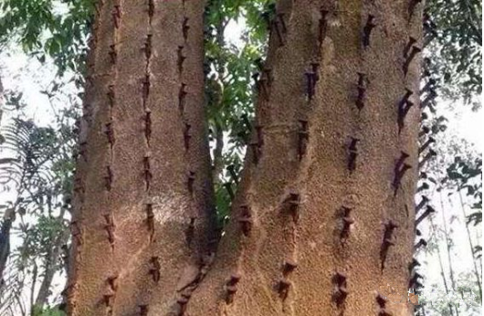 用插鐵枝法也能夠促進沉香樹快速結香,這也是一種常用的人工造香方法。插鐵枝的造香方法是在距離地面約1米左右的沉香樹干上插上鐵枝,按照沉香樹干大小每排可以插3-5條鐵枝。