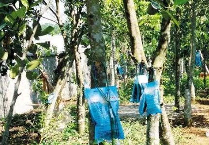 用鑿洞法可以促進沉香樹快速結香,在距離地面約1米的沉香樹干上鑿3-5個深約為2-3厘米,寬約為3-4厘米的樹洞,或直徑約1-3厘米,深約3-6厘米的圓形小洞,然后用濕泥巴封閉,沉香樹受傷的小洞附近的木質部分就會逐漸分泌出沉香樹脂,大約經過1-2年以后,就可以生成沉香了。